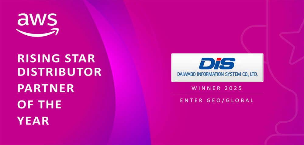 On December 1, 2025, Daiwabo Information System Co., Ltd. (Head Offices: Kita-ku, Osaka City/Minato-ku, Tokyo; President: Hiroyuki Matsumoto; hereinafter “DIS”) received the Rising Star Distributor Partner of the Year - APJ, an award recognizing distribution partners that have achieved remarkable growth, at AWS re:Invent 2025 hosted by Amazon Web Services, Inc. (“AWS”) in Las Vegas, Nevada.