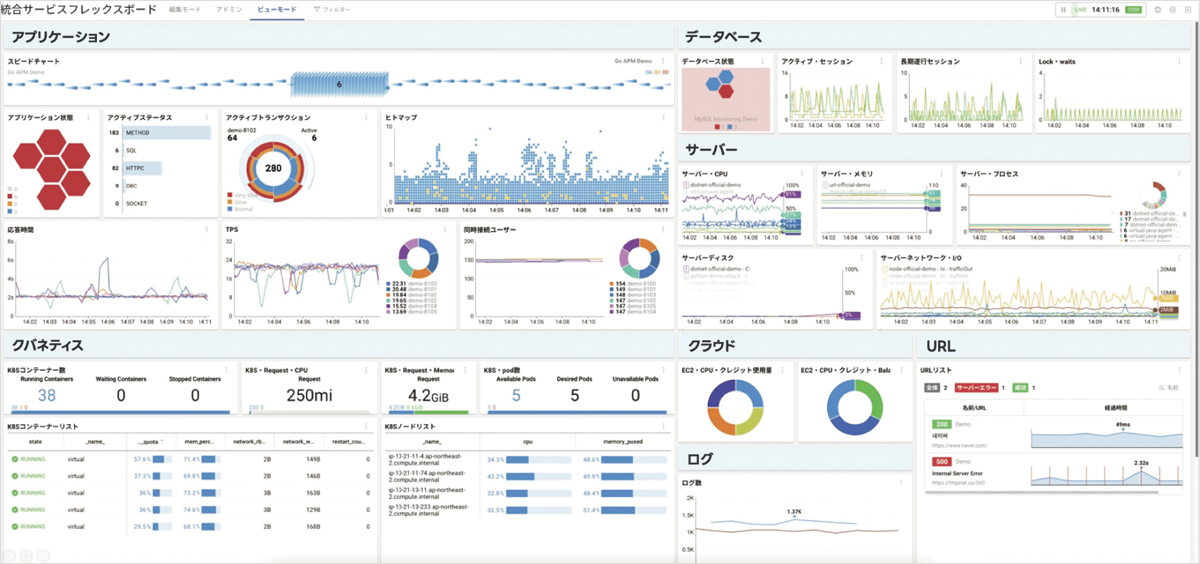 ダッシュボードはあらかじめ作り込まれているが、アプリやデータベース、サーバーといった監視対象の中から、必要なものだけを抜き出して一つの画面にまとめるカスタマイズも可能だ。
