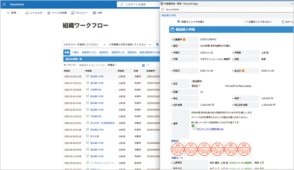 ワークフローはSharePointまたはTeams上で動作する。